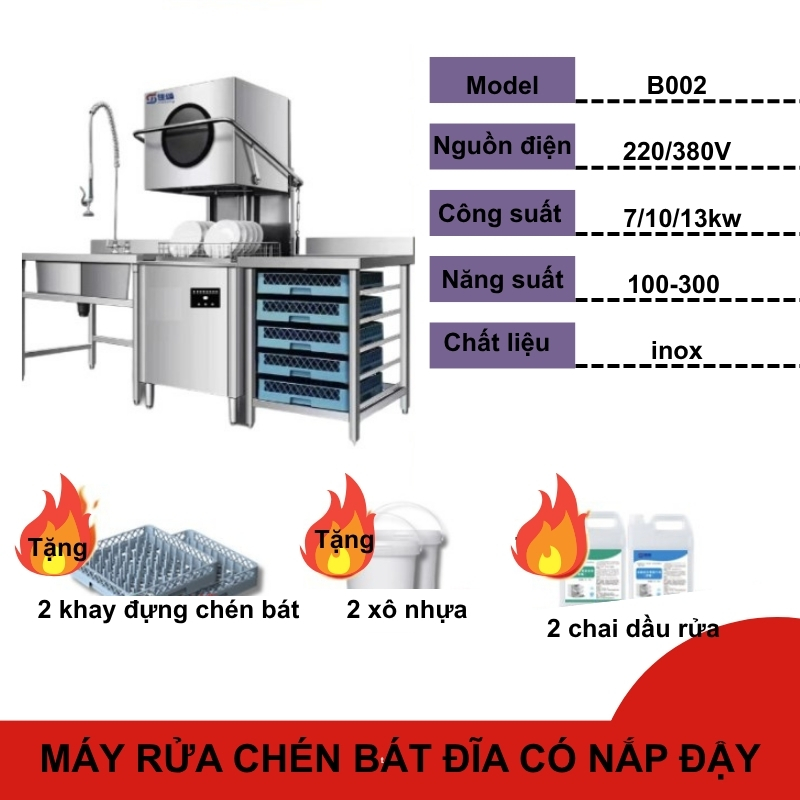 Sở hữu thiết kế hiện đại, chất liệu inox bền bỉ và khả năng rửa sạch mạnh mẽ, máy rửa bát B002 là giải pháp tối ưu để tiết kiệm thời gian, nhân công và chi phí vận hành.